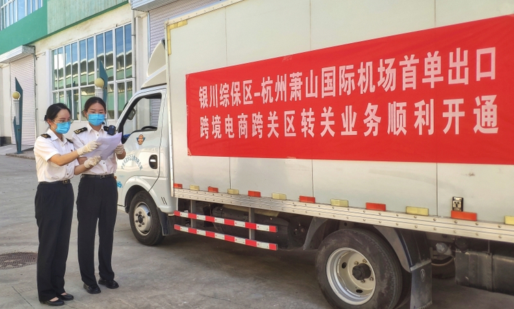 2022年6月24日,寧夏首票跨境電商零售出口跨關(guān)區(qū)轉(zhuǎn)關(guān)物品在銀川綜保區(qū)綜合監(jiān)管查驗中心完成申報、查驗,由海關(guān)監(jiān)管車轉(zhuǎn)運至杭州蕭山國際機場,搭乘航班發(fā)往美國。這標(biāo)志著寧夏正式開通跨境電商零售出口跨關(guān)區(qū)轉(zhuǎn)關(guān)監(jiān)管模式。