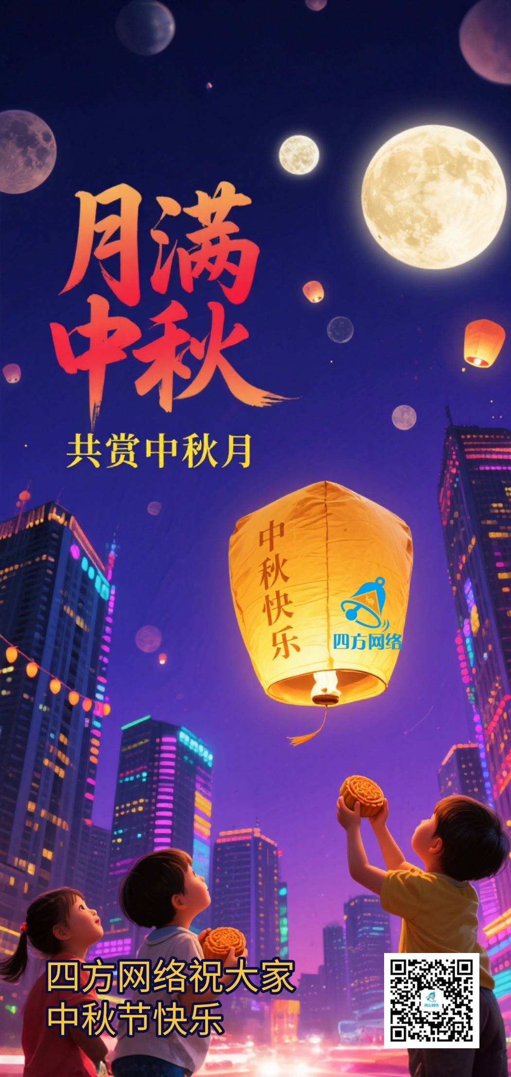 四方網(wǎng)絡(luò)愿這份祝福隨清風(fēng)傳遞:祝長輩身體康健,笑如秋菊綻芳華;祝同輩前程似錦,志伴明月逐星光;祝孩童天真爛漫,趣同玉兔享歡暢。無論你身在何處,都能共享這輪中秋月,共品這份團(tuán)圓情,愿歲歲中秋皆圓滿,年年歲歲常安康!